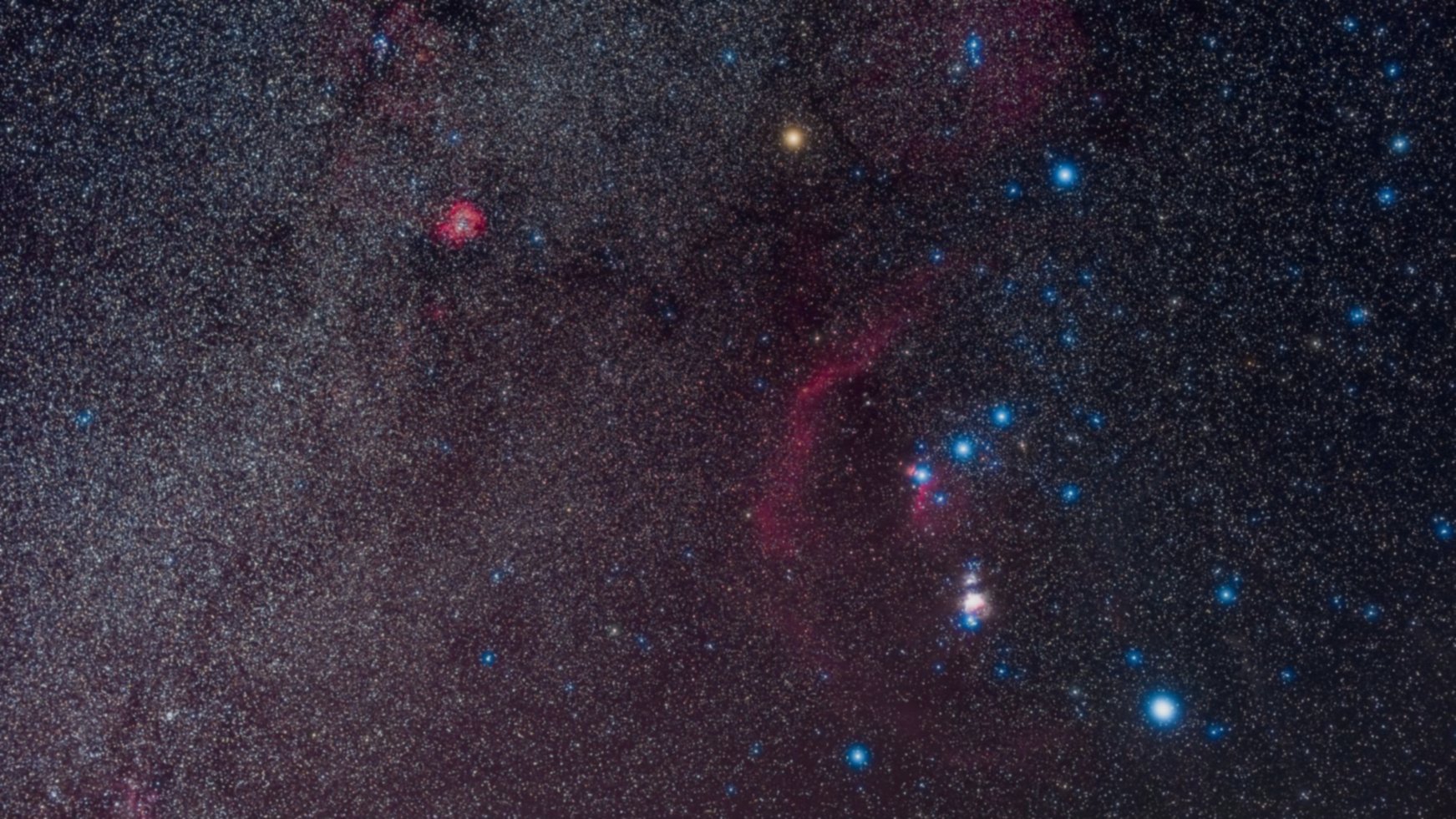 Зимове небо пропонує унікальну перспективу: ми дивимося вбік від галактичного центру, в результаті чого смуга Чумацького Шляху менш густа порівняно з літнім небом. Літній Чумацький Шлях здається яскравішим, оскільки наша лінія зору вирівнюється з щільнішою концентрацією зірок у галактичному ядрі.